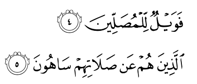 Artinya : Maka celakalah bagi orang-orang yang shalat (yaitu) Orang-orang yang lalai dalam sholatnya. QS. Al-Maun 4-5.