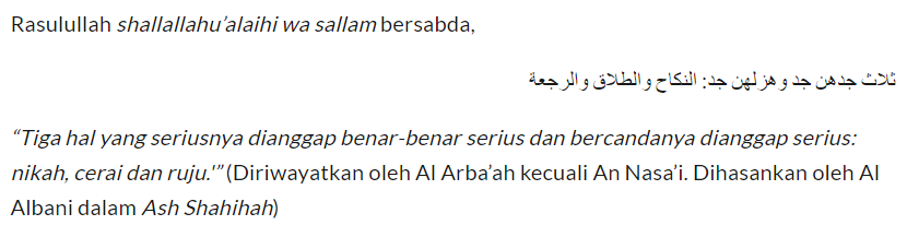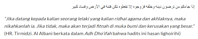 Maka dari itu kita dianjurkan untuk serius dalam hal jodoh ini, seperti sabda Rosulullah SAW.